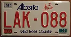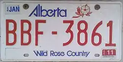 Номерні знаки провінції Альберта видаються Міністерством транспорту Альберти. Провінція Альберта вимагає розміщення лише заднього номерного знаку на автомобілі. Регулярні номерні знаки Альберти мають формат АБВ-1234. Кодування регулярних номерних знаків відсутнє. Чинні бланки номерних знаків мають біле тло, в нижньому рядку номерного знаку розташовується гасло: Країна дикої троянди (Wild Rose Country).