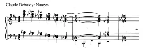 У п’єсі "Присвята Рамо" Клода Дебюссі домінантові акорди використовуються в кульмінації у вигляді арпеджіо широкого діапазону: