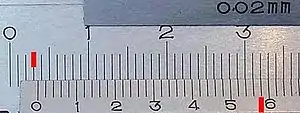 Принцип роботи шкали заснований на тому факті, що око набагато точніше помічає збіг поділок, чим визначає відносне розташування однієї поділки між іншими. Шкала-ноніус зазвичай має ті самі 10 поділок, що і основна шкала, а за довжиною дорівнює тільки 9 її поділкам.