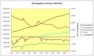 - Tabell 0 Hele landet. Folkemengde 1. januar og endringer i året. 1951 (Norwegian). Statistics Norway. Процитовано 27 січня 2007.