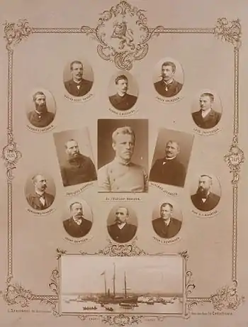 - Фрітьйоф Нансен (норв. Fridtjof Nansen), доктор зоології — начальник експедиції, зоолог, гідролог і океанолог.