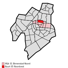 Дільниця Нордвест виділена червоним, район Бінненстад-Норд — рожевим | ||||||