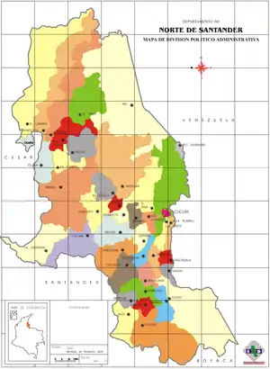 Департамент Північний Сантандер складається з 6 субрегіонів, які діляться на 40 муніципалітетів:
