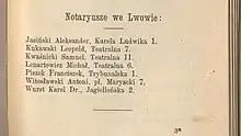 - Лео Вселачинський (Leo Wszelaczyński) — нотаріус, працював у Львові до 1863 року;[3][6][1]