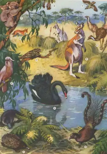 - Австралійська біогеографічна область // Українська радянська енциклопедія : у 12 т. / гол. ред. М. П. Бажан ; редкол.: О. К. Антонов та ін. — 2-ге вид. — К. : Головна редакція УРЕ, 1974–1985.