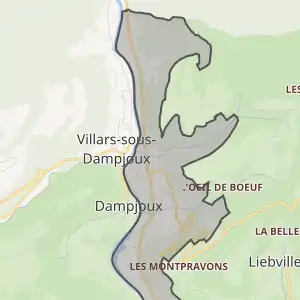 Муніципалітет розташований на відстані[2] близько 370 км на південний схід від Парижа, 60 км на схід від Безансона.