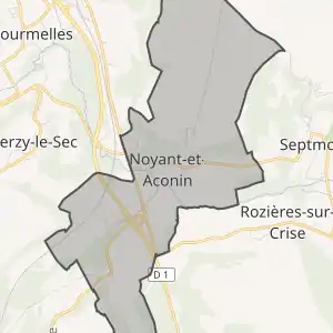 - Розташування муніципалітету Нуаян-е-Аконен на мапі Франції та сусідні муніципалітети