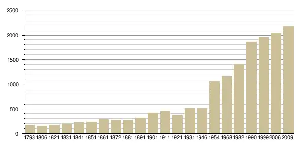 Динаміка населення (base Cassini de l'EHESS pour les nombres retenus jusque 1962[3], base Insee à partir de 1968 (population sans doubles comptes puis population municipale à partir de 2006)[4] · [5] ):