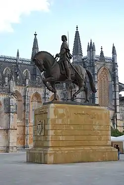 14 серпня 1385 року португальські сили Жуана І та кастильське військо Хуана І зійшлися в битві при Алжубарроті. Нуну привів із собою 6500 вояків-добровольців з числа дрібної шляхти та міщан. Будучи палким шанувальником святої Діви Марії, він мав на своєму прапорі хрест з її зображенням, а також меч, на якому було вирізьблено ім'я Богородиці[2]. У битві португальці розбили переважаюче числом і вмінням кастильське військо, що було сприйняте сучасниками як чудо. Нуно вірив, що перемогу здобули завдяки заступництву Діви Марії, на честь якої згодом фундував численні каплиці, церкви та монастир[2].
