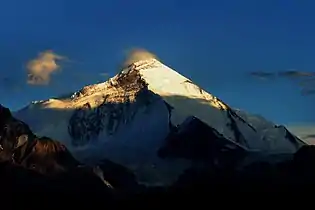| Перше сходження | 1953 рік (французько-швейцарсько-індійсько-шерпська команда, піднялися П'єр Віттоз та Клавдія Коган) | |||