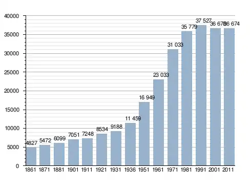 Станом на 31 грудня 2014 року в муніципалітеті офіційно проживало 1189 іноземців з 64 країн, серед них 582 громадяни країн Євросоюзу та 4 громадяни України.[5]