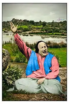 Нусрат Фатех Алі Хан (13 жовтня 1948, Фейсалабад, Пакистан — 16 серпня 1997, Лондон, Велика Британія) — пакистанський співак, виконував музику переважно в суфійському стилі каввалі.[3] Він надзвичайно популярний серед шанувальників цього стилю; згідно з Книгою рекордів Гіннеса, до 2001 року було випущено 125 альбомів з його музикою, що є рекордом для записів у стилі каввалі. Отримав прізвисько «Шахіншах каввалі», що означає «Цар царів каввалі».[4] Писав популярну музику до індійських фільмів.