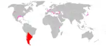 | червоним — природний ареал, рожевим — натуралізація | |