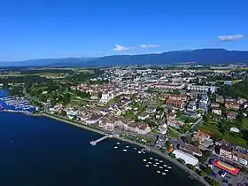 В місті знаходиться залізнична станція, через яку проходить залізниця, що поєднує Женеву з Лозанною. По місту організовано автобусне сполучення. Автобусами можливо також доїхати до сусідніх населених пунктів.