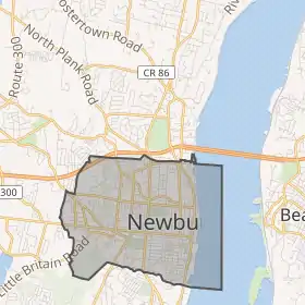 Місто Ньюбург (City of Newburgh) розташоване на території округу Оранж у штаті Нью-Йорк, за 60 кілометрів на північ від міста Нью-Йорк і за 90 кілометрів на південь від Олбані, на західному березі річки Гудзон. По сусідству розташоване однойменне місто Ньюбург, що має статус таун (town). Через річку тут перекинутий міст, що з'єднує Ньюбург з містом Бекон.