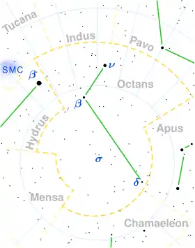 ![]() Розташування Октанта в сузір'ї обведено червоним | |