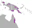 Вид поширений в Новій Гвінеї та на півночі Австралії (Квінсленд). Мешкає в тропічних та субтропічних низовинних лісах.