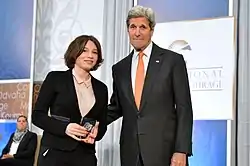 - Лауреат Міжнародної щорічної жіночої премії держсекретаря США «За хоробрість» (Державний департамент США, 2016 рік)[41][42] .