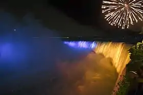 У вечірній час для розваги туристів водоспади, як з американського боку так і з канадського, освітлюють різними кольорами та узорами. Стало популярним освітлювати Ніагарський водоспад національними кольорами на визначні дати. Так у різні роки водоспад був підсвічений синім та жовтим кольорами[25][26]. На 30-річчя української Незалежності 24 серпня 2021 року водоспад також був освітлений кольорами прапора України[27].