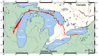 Ніагарський уступ простягається на 1609 км. На проміжку між Гамільтоном і Вотертауном (штат Нью-Йорк) його висоти коливаються від 183 м до 189 м над рівнем моря[1].