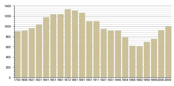 - Recensements de 1793 à 1999 : Cassini ; recensement 2006 : INSEE, наведено за французькою вікіпедією