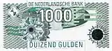 1000 гульденів | 166 х 76 | Сіро-зелений | Зубчасті круги, орнамент з ромбів | Зубчасті круги, орнамент з ромбів | 1994 | |||