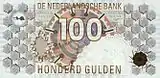 100 гульденів | 154 х 76 | Сіро-блакитний | Концентричні кільця, орнамент з шестикутників | Концентричні кільця, орнамент з шестикутників | 1992 | |||