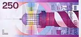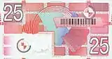 25 гульденів | 142 х 76 | Червоний | Композиція з геометричних фігур | Композиція з геометричних фігур | 1989 | |||