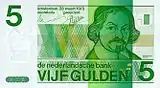 - 5 гульденів — поет Йост ван ден Вондел (банкнота замінена на монету в 1988)