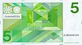 5 гульденів | 136 х 76 | Зелений | Композиція з геометричних фігур | Композиція з геометричних фігур | 1973 | |||