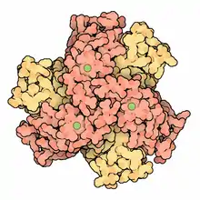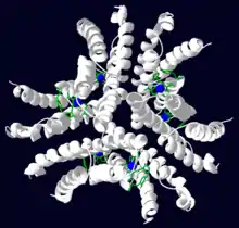 ![]() Структура гомогексамерої нікель-вмісної супероксиддисмутази в Streptomyces[1] | |