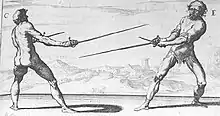 - Giganti, Nicoletto. Scola, overo, teatro: nel qual sono rappresentate diverse maniere, e modi di parare et di ferire di spada sola, e di spada e pugnale. Padua, 1628. — Cap.1