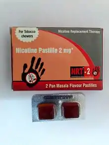 Нікотинозамісна терапія (зазвичай скорочується як NRT) — це постачання нікотину до організму людини іншим способом, без паління. Терапію використовують для зменшення симптомів абстиненції, що виникають при відмові від вживання тютюну шляхом паління або жування.[1]