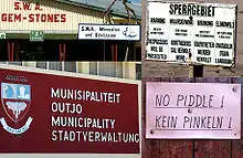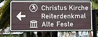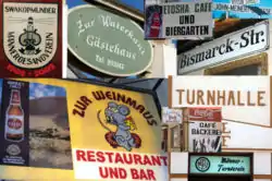 Німецька також розташована на знаках для туристів, особливо тих, які є пам'ятниками та історичними будівлями від німецького колоніального періоду. Інші ознаки, які включають німецький датуються до 1990, коли англійська, африкаанс та німецька мали загальний статус офіційних мов країни.