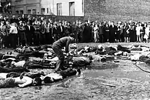Рівень геноциду євреїв у Литві до 95–97% був одним із найвищих у Європі. Це було пов’язано, насамперед, за невеликим винятком, із широким співробітництвом Литви з німецькою владою. Євреїв широко звинувачували в попередньому радянському режимі (див. Єврейський більшовизм ), і їм було ображено за те, що вони приймали радянські війська. [29] Цілеспрямована нацистська пропаганда використовувала антирадянські настрої та посилювала вже існуючий традиційний антисемітизм. [30]