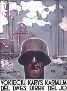 У 1943 році нацисти зробили спробу підняти дивізію Ваффен-СС з місцевого населення, як це було в багатьох інших країнах, але через широку координацію між групами опору мобілізація була бойкотована. Литовські сили територіальної оборони ( Lietuvos vietinė rinktinė ) були врешті сформовані в 1944 році під командуванням Литви, але були розформовані нацистами лише через кілька місяців за відмову підпорядковуватися їх командуванню. [36] [37] [38] Зокрема, стосунки між литовцями та поляками були поганими. Передвоєнна напруженість у районі Вільнюса призвела до громадянської війни на низькому рівні між поляками та литовцями. Литовські підрозділи, спонсоровані нацистами, насамперед Литовська таємна поліція [39], активно діяли в регіоні та допомагали німцям у репресіях проти польського населення. Восени 1943 року Армія Крайова розпочала операцію помсти проти литовських підрозділів і в першій половині 1944 року вбила сотні переважно литовських поліцейських та інших співробітників. Конфлікт завершився розправами над цивільними громадянами Польщі та Литви в червні 1944 року в селах Глітішки (Глінцішки) та Дубінгяї (Дубінки).