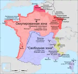 Окупована зона (фр. zone occupée, нім. Besetztes Gebiet) складалася з решти північної та західної Франції, включаючи дві заборонені зони.