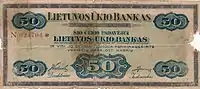 Надпис на купюрах німецькою, латвійською, литовською та російською мовами наголошував про те, що підробка грошових знаків карається законом.