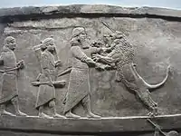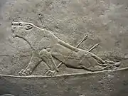 «Поранена левиця», рельєф з палацу Ашшурбаніпала в Ніневії, середина VII століття до н.е., Британський музей, Лондон.