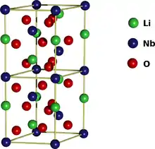 Ніобат літію (LiNbO3) — хімічна сполука, змішаний оксид ніобію, літію, безбарвні кистали із ромбоедричною структурою (а = 0,547 нм, = 53,72°, просторова група R3c). Нерозчинний у воді. Не взаємодіє із кислотами окрім фтористоводневої кислоти.
