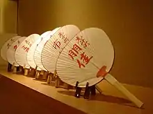 Складаний віяло — головний танцювальний аксесуар. Він може означати дзеркало або (в напівзакритому стані) пляшку саке, меч, гребінець, метелика і так далі.