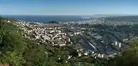 Вид з північного боку міста. На передньому плані громадський проєкт житлового будівництва за проєктом Пастиря Хілл Сім'є, на другому плані Nice-Ville і затока Ангелів на задньому плані
