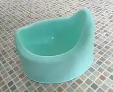 Термін «горщик» використовується під час обговорення туалету з маленькими дітьми, наприклад, під час навчання горщику. Це також зазвичай використовується для позначення невеликих пристосувань у формі туалету, виготовлених спеціально для навчання горщикам, які схожі на камерні горщики. Ці «горщики» — це, як правило, велика пластикова чаша з ергономічною конструкцією задньої та передньої панелей для захисту від бризок. Вони можуть мати вбудовану ручку або затискач ззаду, щоб забезпечити легке спорожнення та нековзну дно, щоб запобігти ковзанню дитини під час використання. Комусь надаються яскраві кольори, а на інших можуть бути ніжні або ненав'язливі малюнки або герої мультфільмів. У багатьох випадках їх використовують, оскільки дітям важко маневрирувати в звичайному туалеті; крім того, більший отвір у звичайному туалеті занадто широкий, щоб дитина могла зручно сидіти і не впасти без сторонньої допомоги. Їх розмір означає, що їх можна упакувати в сумку під час походу на природу або розмістити під ліжком для хворих на ніктурію чи іншу форму нетримання сечі.