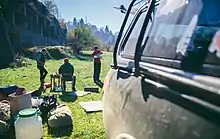 ![]() Приготування до Нічного Чорногірського Марафону у с. Кваси (місце старту). Жовтень 2017 |