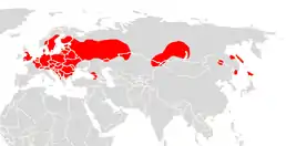 Країни проживання: Албанія, Австрія, Білорусь, Бельгія, Болгарія, Китай, Хорватія, Чехія, Данія, Естонія, Фінляндія, Франція, Німеччина, Греція, Угорщина, Італія, Японія, Казахстан, Республіка Корея, Латвія, Ліхтенштейн, Литва, Люксембург, Молдова, Монголія, Чорногорія, Нідерланди, Норвегія, Польща, Румунія, Російська Федерація, Сербія, Словаччина, Словенія, Іспанія, Швеція, Швейцарія, Туреччина, Україна, Сполучене Королівство.