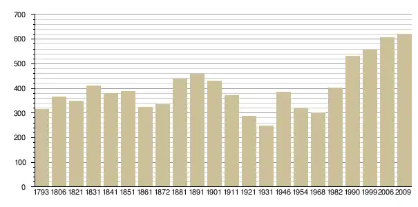 Динаміка населення (base Cassini de l'EHESS pour les nombres retenus jusqu'en 1962[4], base Insee à partir de 1968 (population sans doubles comptes puis population municipale à partir de 2006)[5] · [6] ):