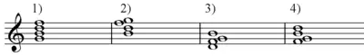 Тризвук (1) та його обернення: 2-секстакорд, 3-квартсекстакорд