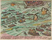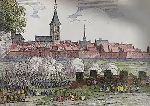 | 6000 піхотинців, 200-300 кавалеристів, 16 знарядь | 600 піхотинців гарнізона, 7000 іспанських піхотинців, 1300 кавалеристів | ||||||