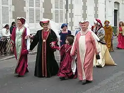 1912 року в процесії вперше з'являється дівчина, що зображає Жанну, яка рухається на коні, одягнена в обладунки XV століття. Збереглося ім'я першої виконавиці ролі — нею була 17-річна Жанна Бюро[61].