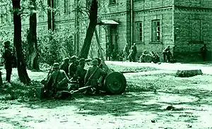 ![]() Німецький підрозділ веде бій на території Берестейської фортеці. Німецький підрозділ веде бій на території Берестейської фортеці. | |||||||